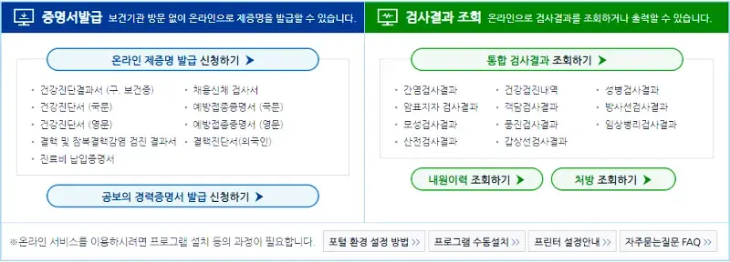 2. 온라인으로 건강진단서 출력하기