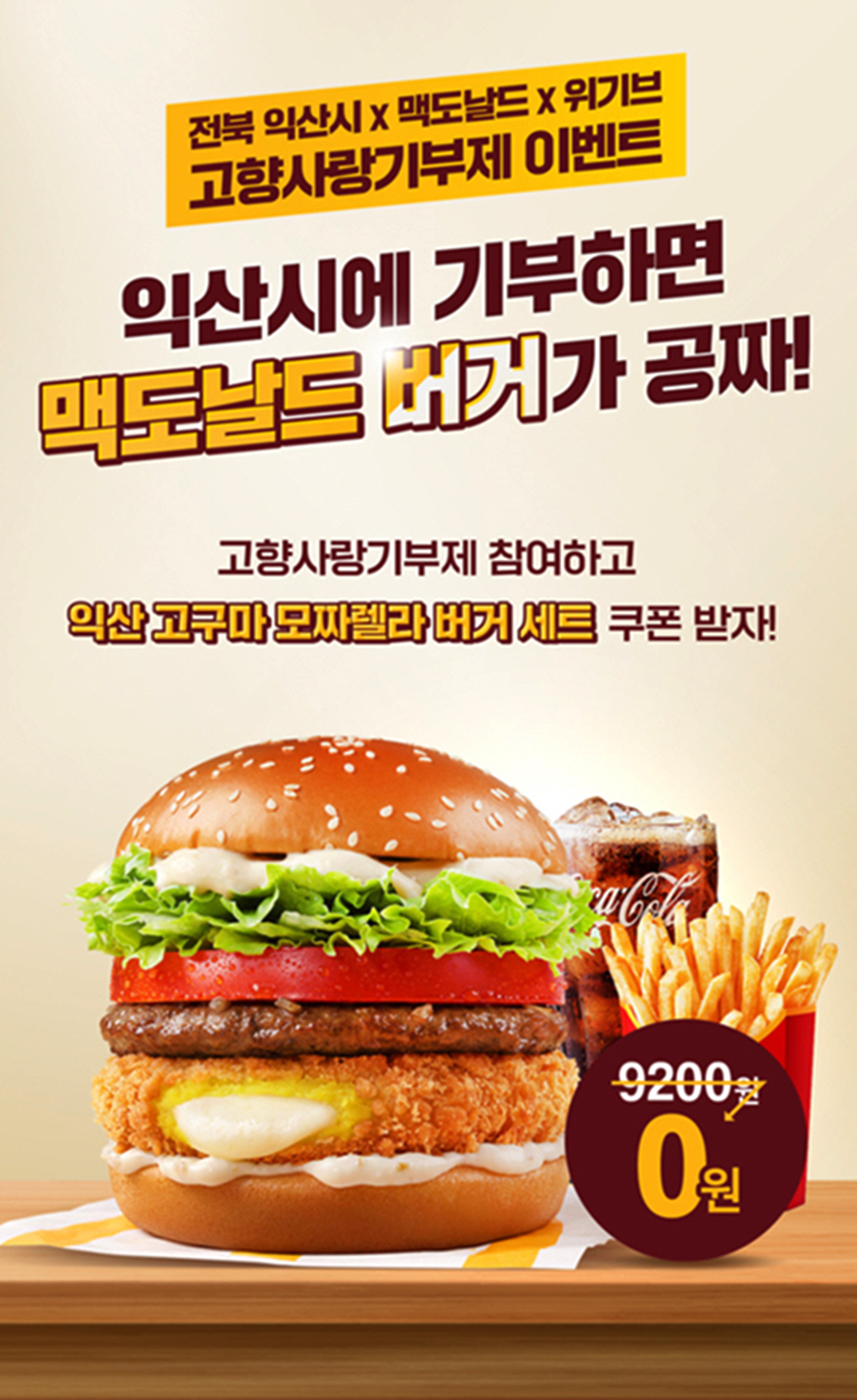 이 버거는 단순히 맛있는 신메뉴를 넘어선 의미를 가집니다. 맥도날드는 이번 프로젝트를 위해 익산시와 협력하여, '고향사랑기부제'와 연계한 프로모션도 진행합니다. 매장 내 트레이 매트나 영수증 QR코드를 통해 익산시에 10만 원 이상 기부하면 버거 세트 쿠폰을 증정하는 방식입니다.